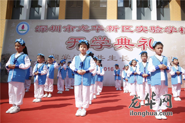 当天上午,龙华新区实验学校用一场特别的开学典礼迎接600余名新生。新区党工委委员、管委会副主任丘孟军,新区公共事业局副局长谌叶春出席开学典礼。“问学道,共生长,有担当”,孩子们稚嫩的童音回荡在校园内,含义深远的校训流传进在场观众的心中。随后,一群“小书童”鱼贯上台,拉开了典礼的“重头戏”——点朱砂、开笔礼仪式。“正衣冠,崇德明礼;点朱砂,润心启智;击响鼓,齐名志向;开笔锋,学会做人……”在传统仪式中,孩子们感受书香魅力,开启崭新校园生活。