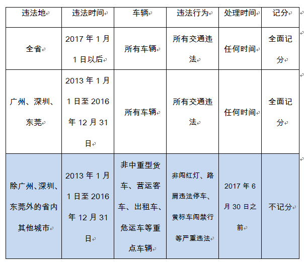 从2017年1月1日起,广东全省将落实全面记分工作,所有交通违法行为应记必记 !