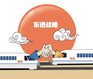 东进战略是市委市政府落实市第六次党代会提出的“不断缩小原特区内外和东西部地区发展差距”及市“十三五”规划纲提出的“强化东中西三轴辐射带动,促进‘两带’优化提升,推进区域协调发展。”的一项重要举措。2016年5月7日,市东进战略领导小组第一次会议审议并原则通过《深圳市实施东进战略行动方案(2016~2020年)》及相关配套方案。会议强调,将包含罗湖、盐田、龙岗、坪山、大鹏在内的东部地区打造成深圳发展的新增长极。