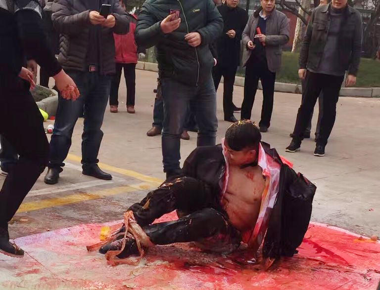 陕西西安市曲江一酒店里,礼现场新郎被亲朋好友“整惨”了,对于这种婚闹,在他们当地也是一种特别的祝福。