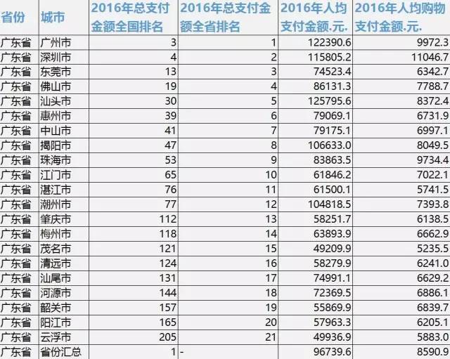 深圳人均支付全国第四、广东省内排第二
