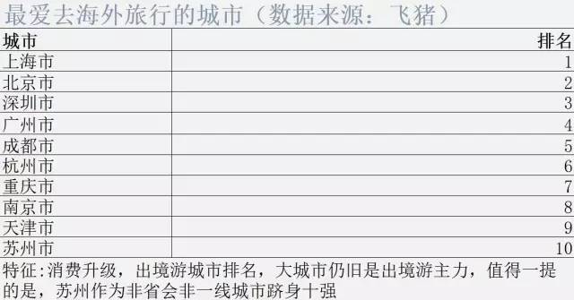 飞猪数据显示,国内最爱去海外旅行的前十名城市,分别是上海、北京、深圳、广州、成都、杭州、重庆、南京、天津和苏州。在爱出去玩这件事上,深圳人排名全国前三。