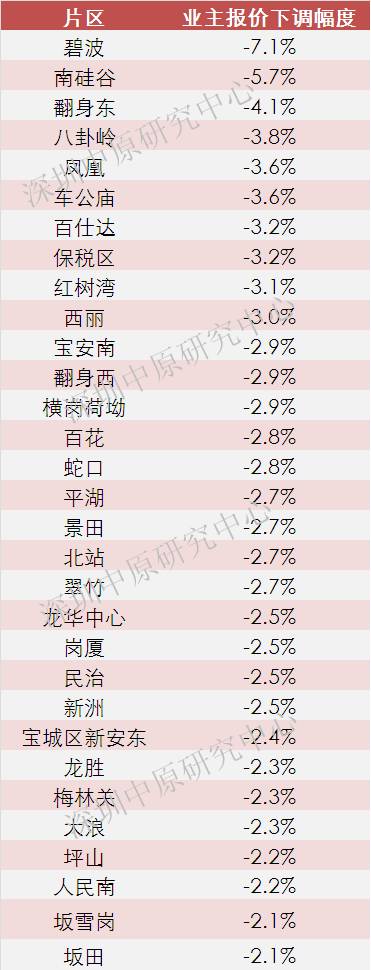 附表:深圳各片区跌幅排行榜