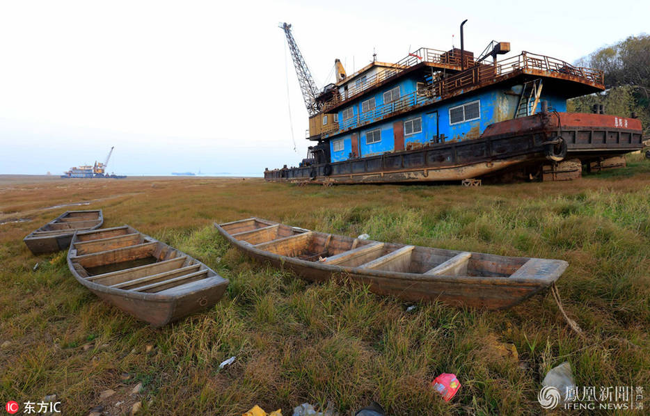 湖区渔船通行受阻,容易搁浅,众多大型采砂船和渔民的小渔船来不及撤离,困在湖底动弹不得,场面震撼壮观。