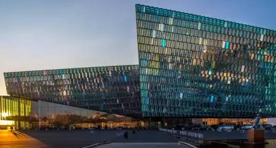 冰岛哈帕音乐厅:位于海陆交界处的冰岛哈帕音乐厅是由美术家奥拉夫埃利亚松以及亨宁拉森建筑事务所合作完成,其灵感来自冰岛美景与极光,音乐厅闪闪发亮的外观,映照着冰岛港口与居民们的生活,在这个港口城市所树立的现代化建筑,良好地联结了生活与艺术。
