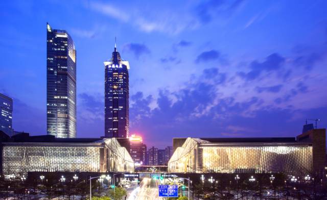 深圳音乐厅:深圳音乐厅坐落在深圳市福田中心区,交通便利,周边各类服务配套设施齐全。它是由享誉国际建筑界的日本著名建筑大师矶崎新先生主持设计。其建筑造型优雅独特,外墙采用"黄红青白黑"五色,蕴含象征中国传统五行的理念,充分融汇出东西方的文化韵味。