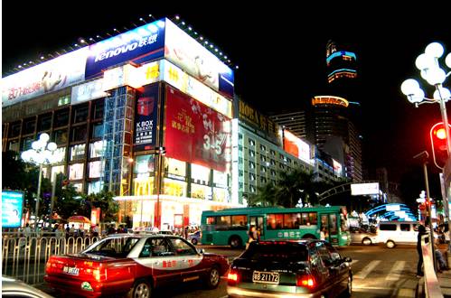 华强北商圈:作为深圳市最繁华的商业街,华强北的日客流量为50万人次,同时它也是国内电子产品流通的主要枢纽,尤其是手机批发零售业务闻名全国。华强北沿街商业经营单位717家,汇集了电子、电器、通讯、钟表配套、服装、百货、金饰,从而使华强北成为综合功能齐全的一条购物街。