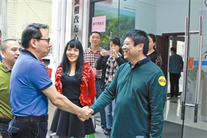 罗湖区副区长宋强与当事人崔先生握手交谈。