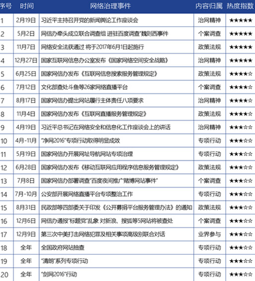 表1.2016年治网举措引发舆论关注一览