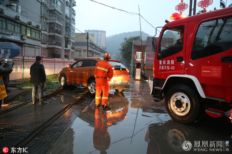 7时38分,重庆市万盛经开区公安消防大队指挥中心接到报警称,一辆越野车被困在万盛三元桥火车铁轨上,火车将于8时经过铁轨,时间紧迫。