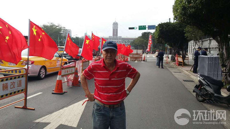 据环球网2017年1月11日报道,台湾“中华爱国同心会”自2014年10月开始,每月在台湾“总统府”前举行一次升五星红旗的仪式,到现在已有28次。图为在台湾“总统府”前凯达格兰大道上升起的五星红旗。