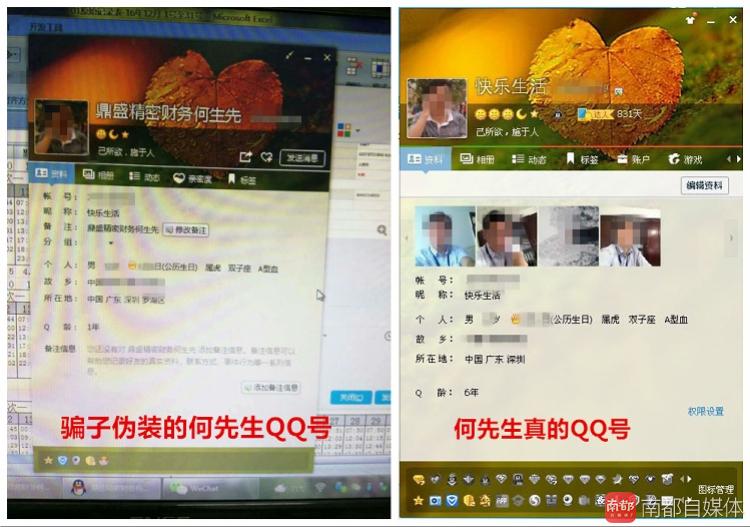 刘先生觉得匪夷所思:一夜之间,对方的真账号“消失”,假账号出来“顶替”,这是怎么做到的?据南都记者查看,这个疑似骗子的QQ号,头像、昵称、年龄、生日、故乡、所在地都和何先生本人的一模一样,唯独一串QQ号码不同,“Q龄”仅一年,也和何先生本人不符。