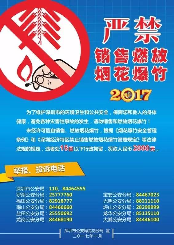 2017年,深圳,全城禁售禁燃烟花爆竹,即日起至2月底,警方将在全市范围内开展烟花爆竹专项检查整治行动,严查严处非法。