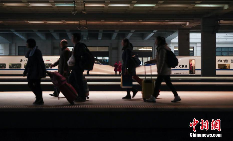 1月16日,大批旅客在汉口火车站乘坐火车出行。随着春节的临近,武汉各火车站迎来客流高峰。中新社记者 张畅 摄