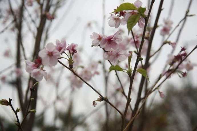 观澜湖生态体育园4000株樱花含苞蓄势,已有部分花种提前绽放。