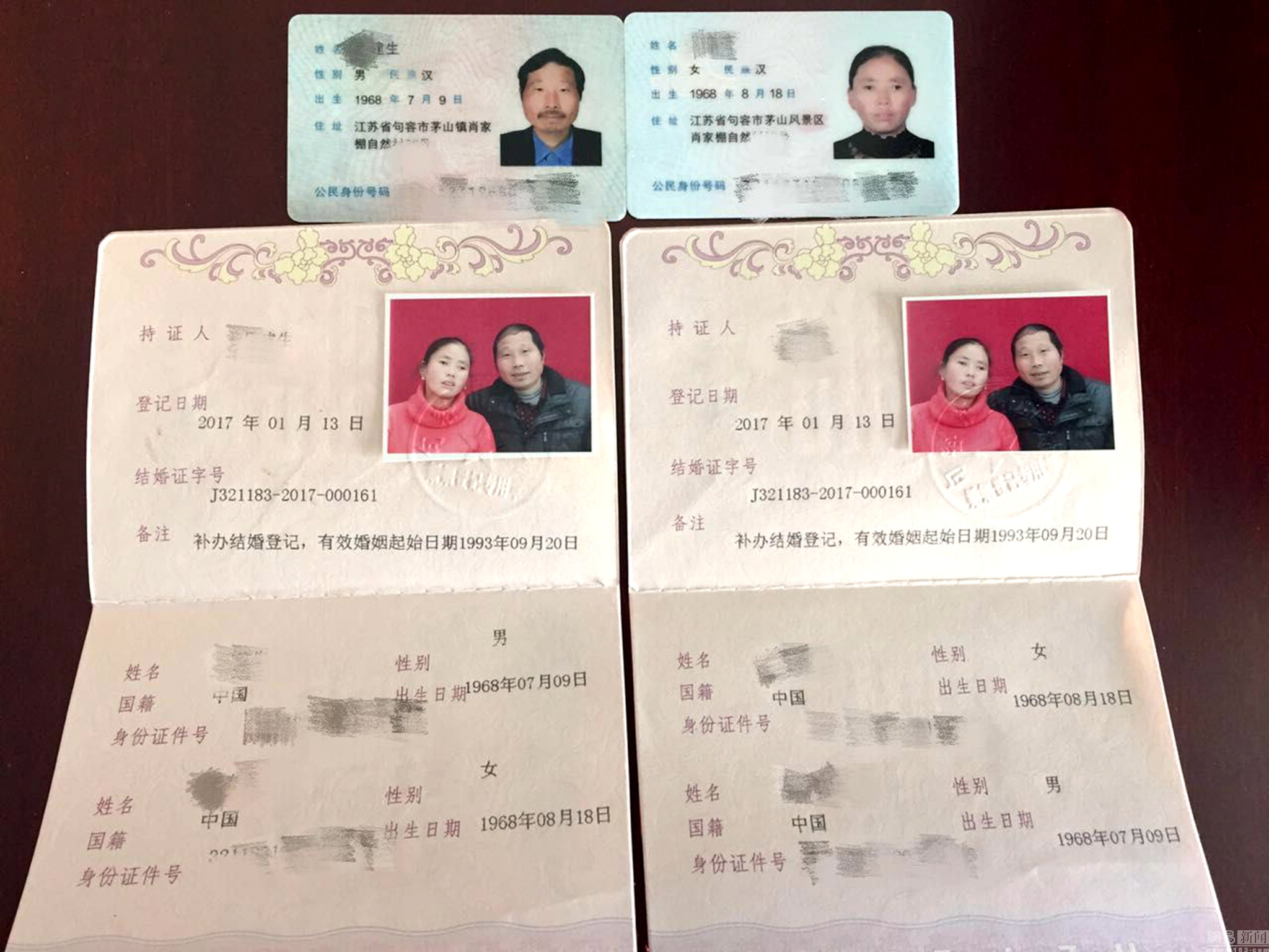 王某称,其祖籍河北邯郸,在其十八、九岁的时候,因为年少无知,被人骗至江苏省句容市茅山风景区打工。民警告诉记者,1993年9月,王某和茅山风景区夏林村人周某认识后结婚,但是其没有户口。因为没有户口,自然就没有领到结婚证,为此夫妻俩一直耿耿于怀。而能有一本“结婚证”使得自己的婚姻变完整,就成了夫妻俩共同的心愿。