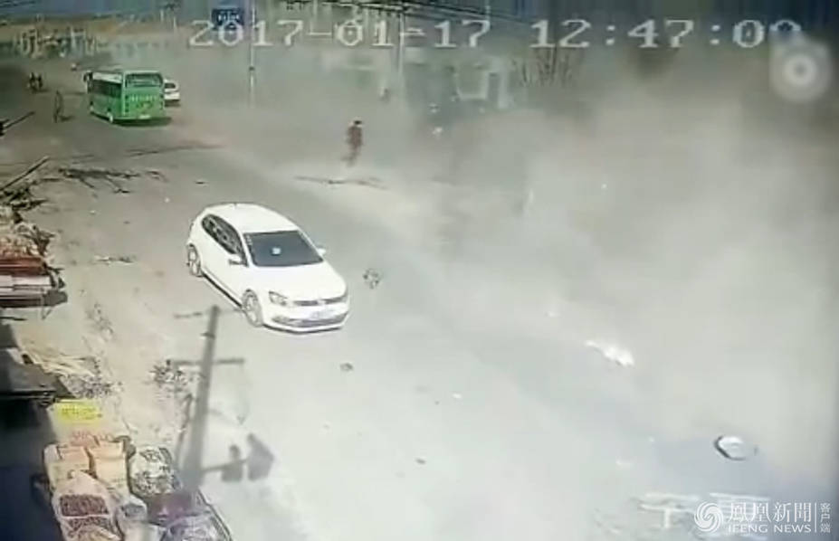 事发路段为一十字路口,记者从事发路段监控视频看到,涉事大货车高速冲向路口一侧的民宅,至少三间民宅倒塌,几秒钟后,一阵烟雾将监控探头笼罩。
