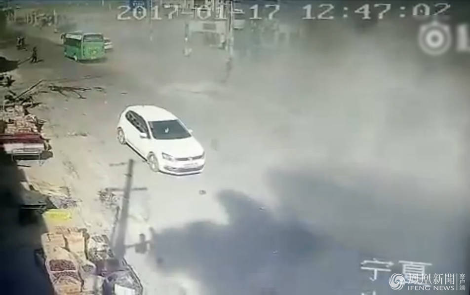 事发路段为一十字路口,记者从事发路段监控视频看到,涉事大货车高速冲向路口一侧的民宅,至少三间民宅倒塌,几秒钟后,一阵烟雾将监控探头笼罩。