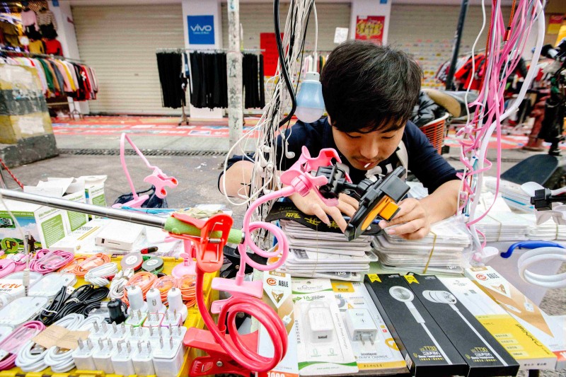 “我是客家人,来自潮汕揭阳,不是潮汕人。”小伙儿含着棒棒糖给手机贴着膜害羞地继续回答着“我刚来深圳几个月,过年就不回去了。”