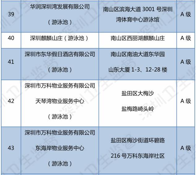 深圳住宿、沐浴、游泳、美容美发场所卫生等级全公开!