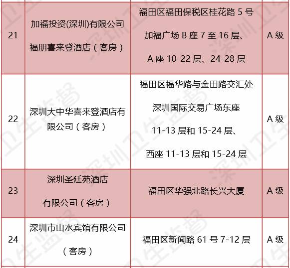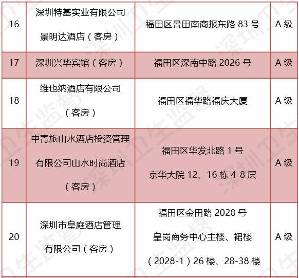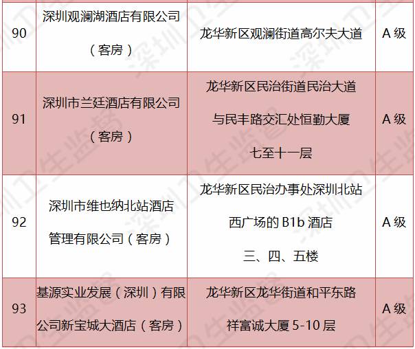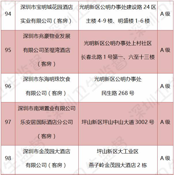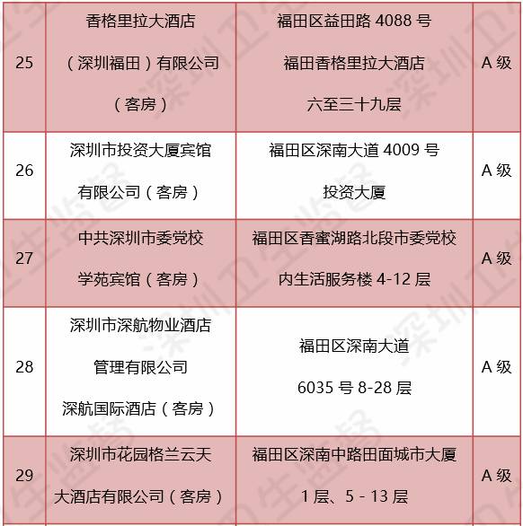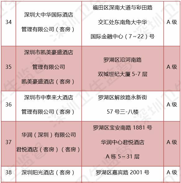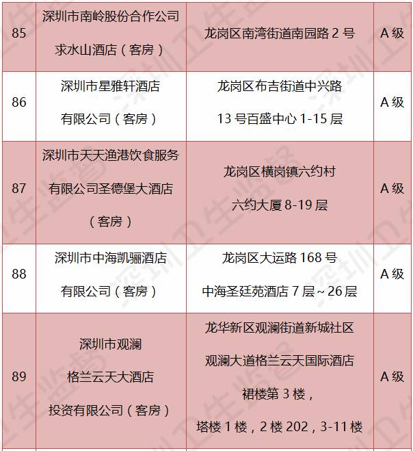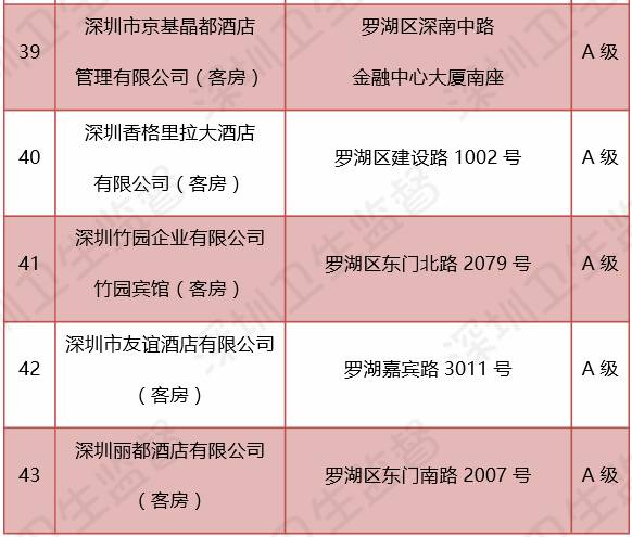 下列几份名单可供大家参考选择哦~2016年深圳市住宿场所量化评级 A级单位名单