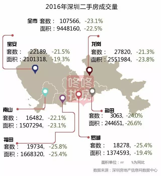 宝安区成交22189套二手房,同比减少21.5%;成交面积2101318平方米,同比减少19.3%。