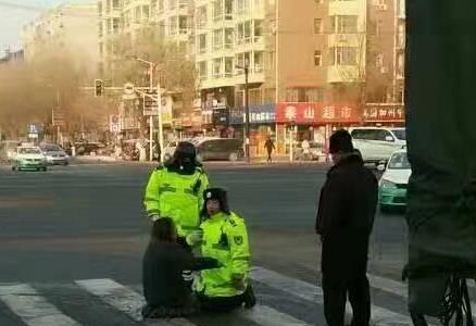 事发时参与执勤的交警要求货车司机出示驾驶证及行驶证时,坐在副驾驶的女子街头下跪,希望不要处罚。