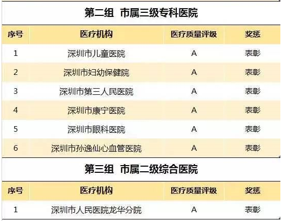 新闻提要 深圳市龙岗区妇幼保健院等21家评为B级医疗质量且无不良执业行为记录的单位被通报表扬。获评D级医疗质量的6家医院被通报提醒注意,包括深圳燕罗塘医院、深圳华侨医院、深圳福华中西医结合医院、深圳广生医院、深圳建国泌尿外科医院、深圳富华医疗美容医院。