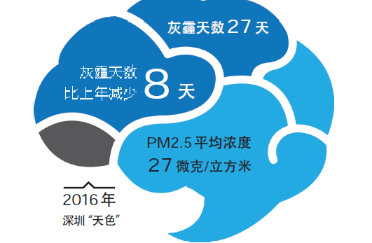 深圳新闻网讯 1月19日,深圳市人居环境委召开2017年全市人居环境工作会议,记者从会上了解到,2016年深圳全年PM2.5平均浓度27微克/立方米,比上年下降了10%,灰霾天数27天,比上年减少8天,为近十年最优水平。