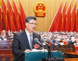 马兴瑞作政府工作报告。深圳商报特派记者 林晓斌 摄