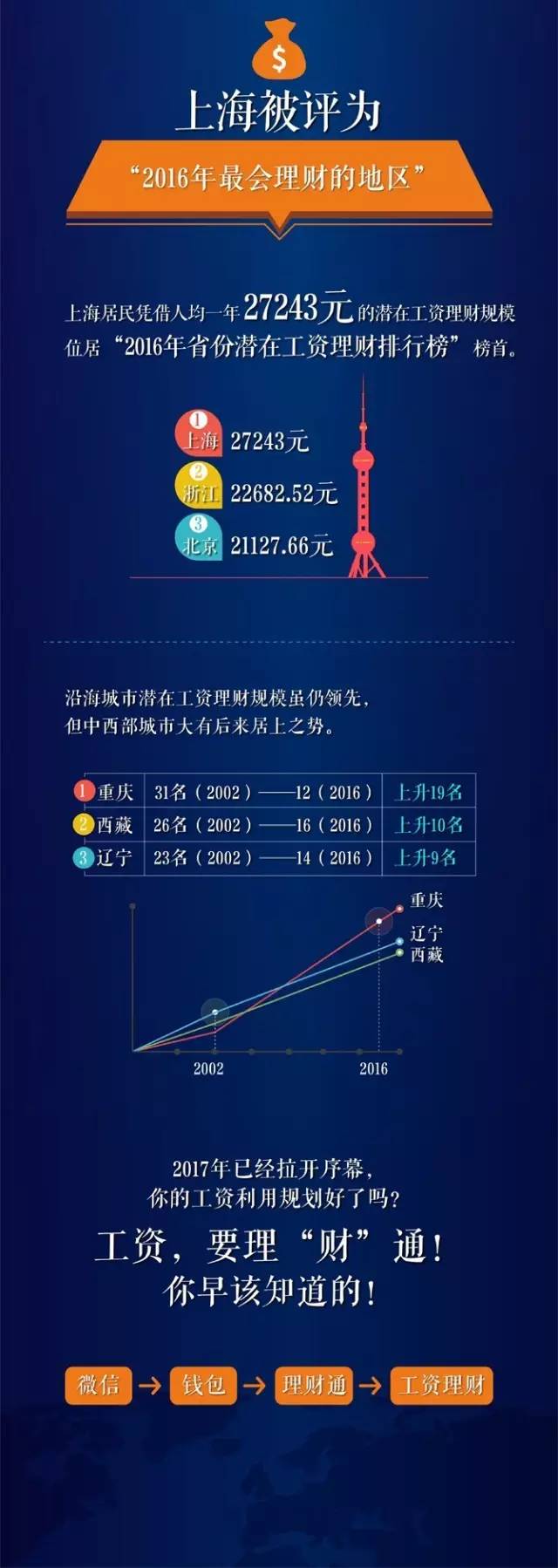 数据显示,2005年至2016年,我国居民工资理财规模增长近10倍,人们工资收入中用于主动理财的规模大幅上涨,理财方式日渐多元化。