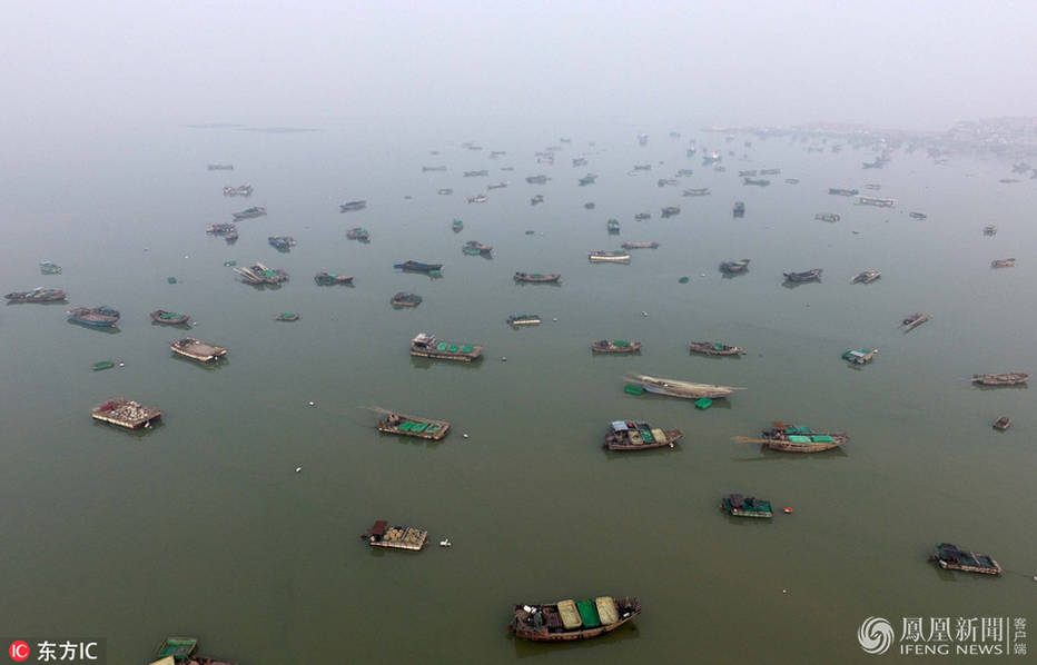 2017年1月19日,江苏连云港,大量渔船靠泊连云港市连岛渔港内避风。供图:王健民/东方IC