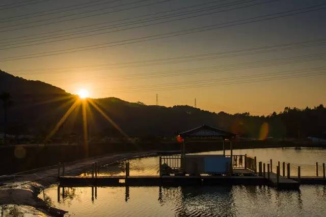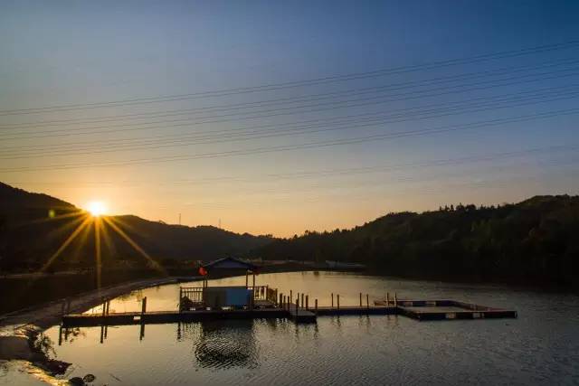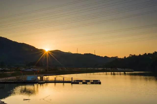飞来峡水利工程为铁溪小镇送来一处半天然、半人工的绵绵3.8公里绝色湖景,到达村落前面湖面开阔,晚霞西下万道光芒映射湖面,银鱼跃水熠熠生辉。