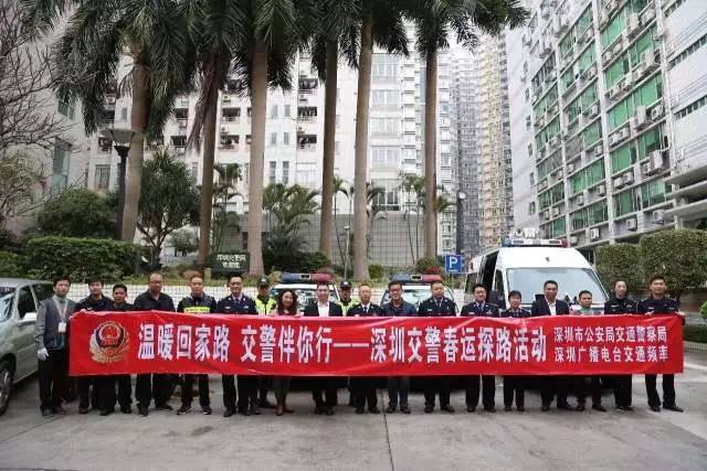 深圳交警踏上探路之行,为返乡车友提供及时交通指引。