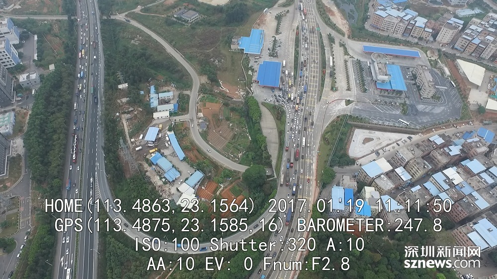 新闻提要 深圳交警使用无人机探路,分别拍摄了粤北线、粤赣线、粤西线等深圳人的主要返乡行车线路。