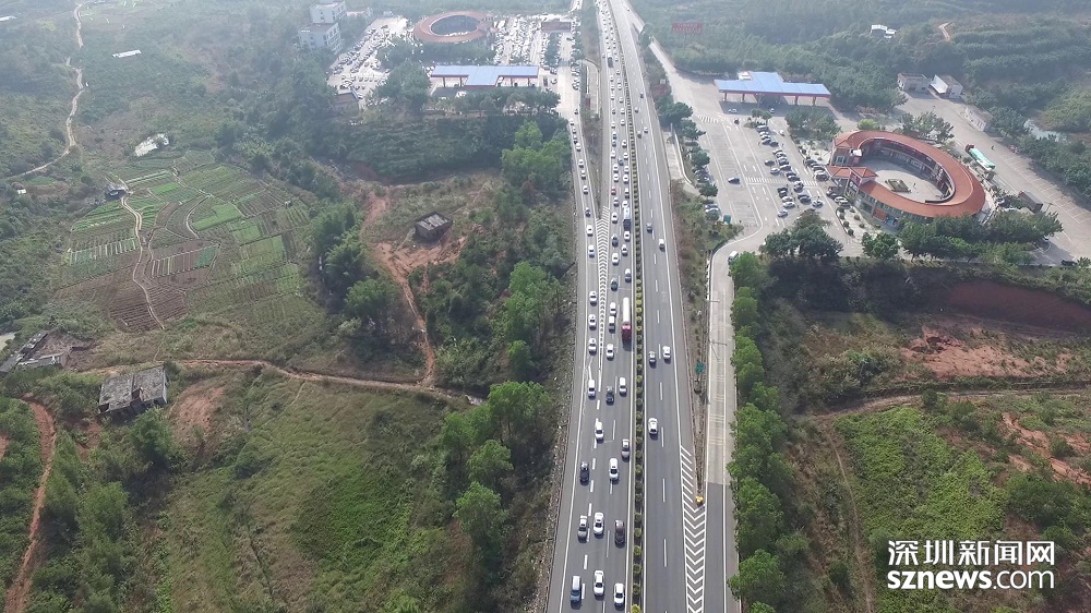深圳交警使用无人机探路,分别拍摄了粤北线、粤赣线、粤西线等深圳人的主要返乡行车线路。