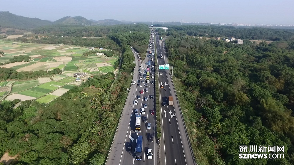 深圳交警使用无人机探路,分别拍摄了粤北线、粤赣线、粤西线等深圳人的主要返乡行车线路。