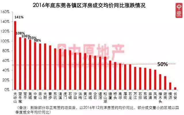 临深房价越走越高,深圳客开始向价格洼地转移,紧接着常平、寮步、大朗、沙田追涨,茶山、望牛墩、石碣、中堂等临广区域补涨。从涨幅来看,年内大岭山大幅领涨全市, 累计涨幅高达141%,全市有24个镇区房价涨幅超过50%,有7个镇区涨幅在20%-50%。