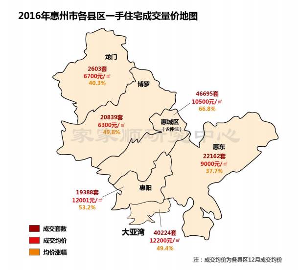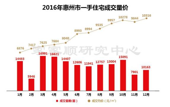 据家家顺研究中心监测,2016年惠州一首住宅库存面积持续下降,去化周期缩短至6.2个月。