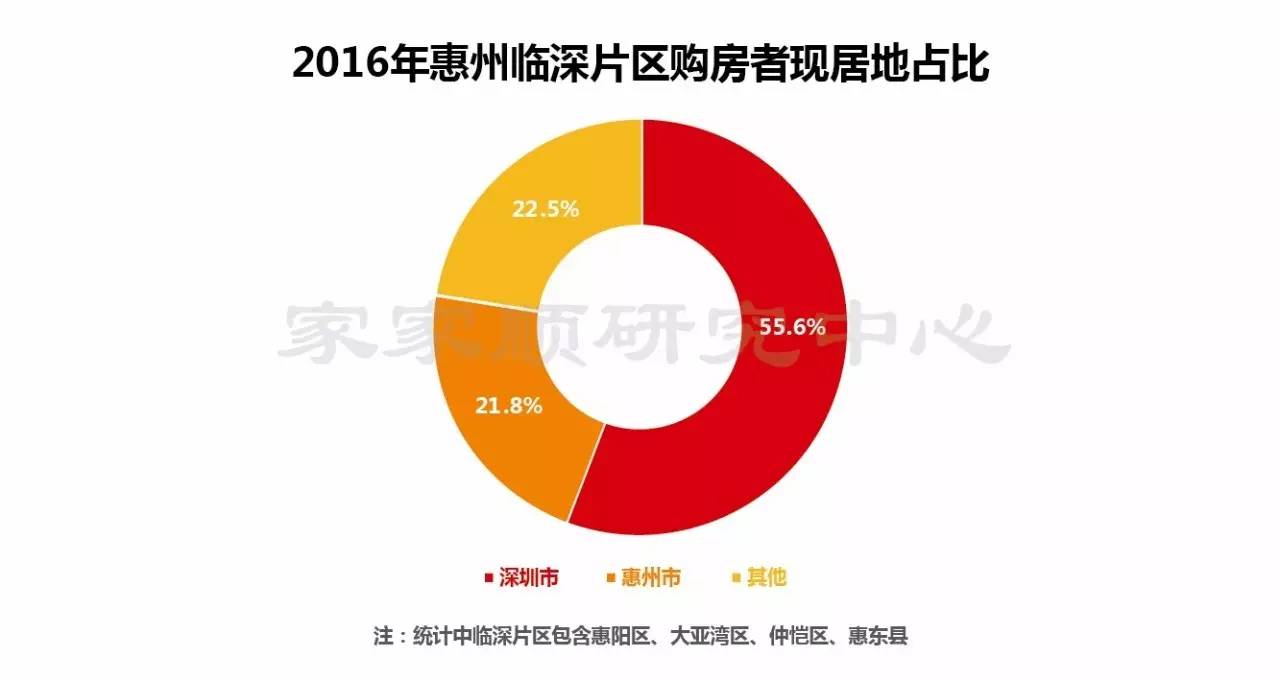 惠州购房者占比前两名分别为深圳市、惠州市,约占总体的77%,其中深圳客占比超5成。