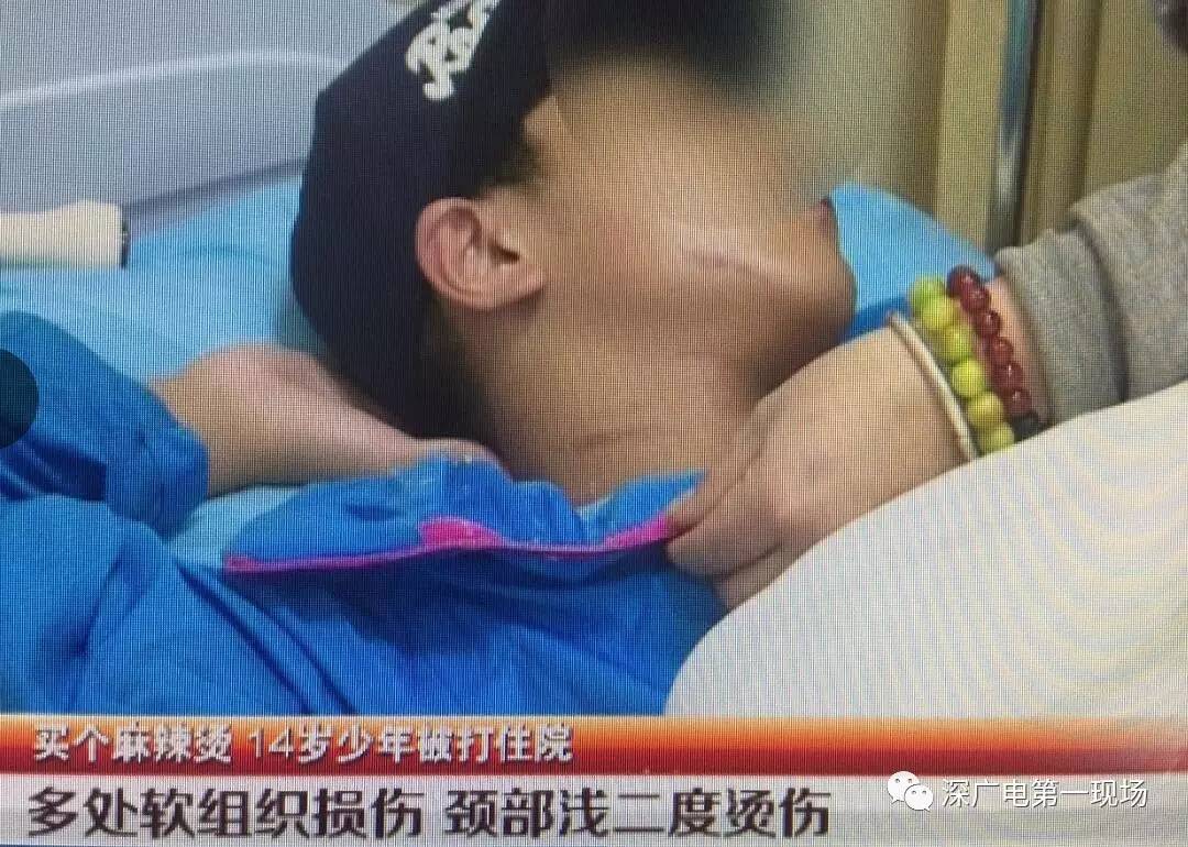 叶女士还说了一个细节,中年男子在殴打小坤时,下手很没分寸,甚至还想拿滚烫的热汤泼到小坤身上,还好被叶女士等人拦住了,不过小坤还是被溅出来的热汤烫伤了。目前,小坤正在医院住院接受治疗。病历显示,小坤身上多处软组织损伤,颈部浅二度烫伤。