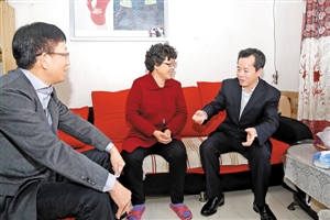 昨日下午,区长陈清(右)率队到三联社区慰问困难党员冯爱平(中)。龙华新闻记者 蔡维泽 摄