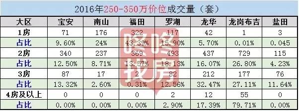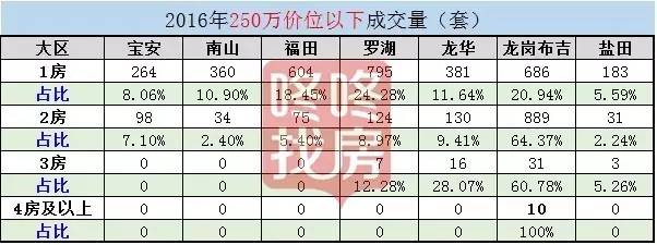 宝安、南山以及福田,3房和4房成交,绝迹;但在龙岗布吉,还能在这个价位段找到3房和4房的户型。