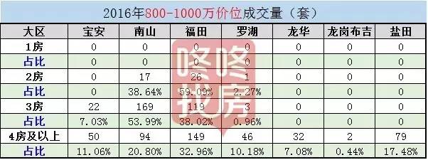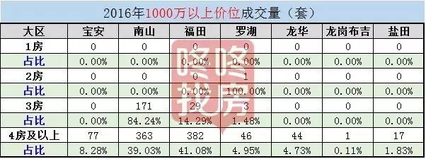 1房绝迹;2房主要集中在福田和南山;3房,龙华、龙岗布吉以及盐田,为0。