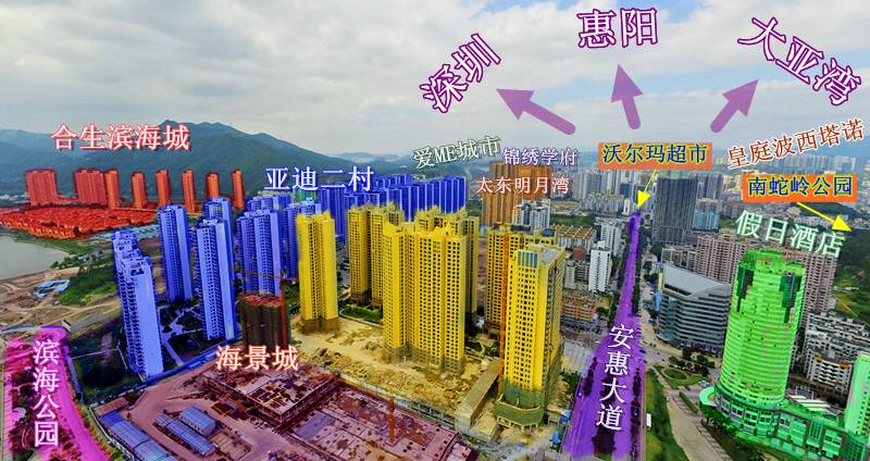 西区:西区与惠阳区几乎连在一片,是整个大亚湾楼盘项目最多,同时也是人口密度最大的区域。今年碧桂园大手笔不断,在西区接连布下多个项目,带热了整个区域内的楼市发展。此外,万达广场、灿邦新天地、翡翠山的商业配套落地启航,也将为改善和提升整个片区的居住氛围创造利好。