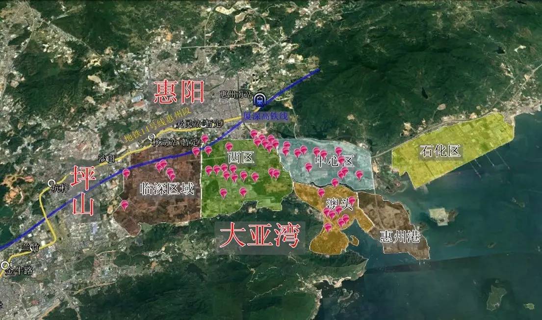 大亚湾就行政区划而言,可以分为四个区域:西区,中心区,澳头,霞涌。目前约有50个楼盘在售,大致分布在西区、中心区、澳头以及与坪山接壤的“实际”临深区域。