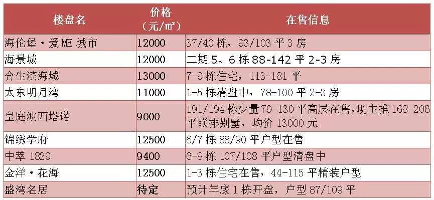 澳头在售楼盘一览表