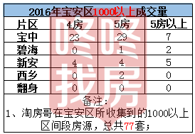 1、 1000万以上成交,宝中最多,4房和5房集中成交在宝中。