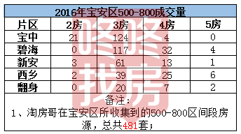 3、500-800万,宝中和碧海成交量不分伯仲,3房集中碧海宝中,4房集中碧海西乡