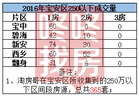 5、 250-350万成交区间段,西乡成交总最多,1房宝中成交最多,2房西乡成交最多